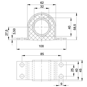Durchmesser D (mm)Durchmesser D2 (mm)Durchmesser D1 (mm)Breite B (mm)Höhe H (mm)Länge L (mm)Länge L1 (mm)Metallstärke S (mm)Bohrungsdurchmesser d (mm)Anzahl BohrungenBohrungsabstand c (mm)Bohrungsabstand C1 (mm)