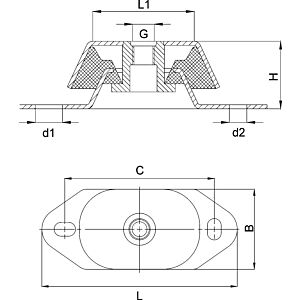 Halbovale Maschinenfüße für die elastische Lagerung von Maschinen oder die Nivellierung von Unebenheiten. Gut geeignet für Pressen, Maschinen oder als Motorenlager. Reduzieren Vibrationen und Körperschall. Der Standardwerkstoff ist NR oder NBR in mittlerer Härte. Andere Werkstoffe und Härten auf Anfrage.