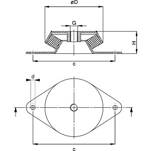 Ovale Maschinenfüße für die elastische Lagerung von Maschinen oder die Nivellierung von Unebenheiten. Gut geeignet für Pressen, Maschinen oder als Motorenlager. Reduzieren Vibrationen und Körperschall. Der Standardwerkstoff ist NR oder NBR in mittlerer Härte. Andere Werkstoffe und Härten auf Anfrage.